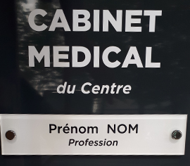 Plaque professionnelle, tampon encreur, badge, carte de visite, plaque de porte.